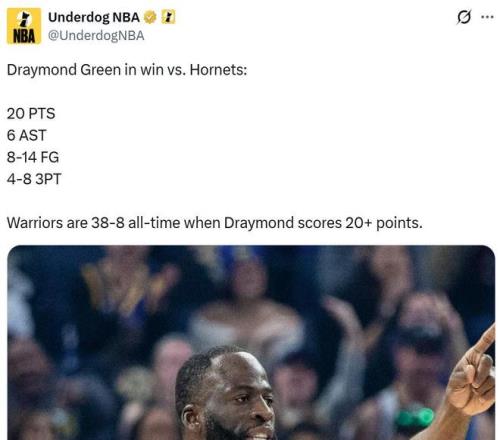 生涯至今,当追梦单场至少拿到20分时,勇士队战绩为28胜8负。